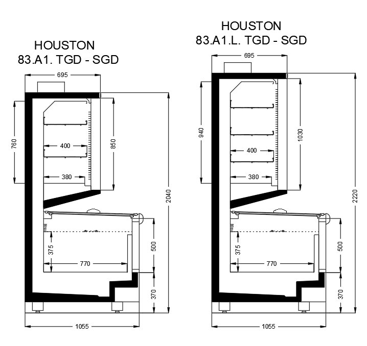HOUSTON: Double-glass door cooler designed for modern markets and supermarkets, offering high energy efficiency. Provides maximum visibility while displaying your products with its large interior volume and adjustable shelf system. Offers long-lasting use with LED lighting, silent operation, and durable material structure.
