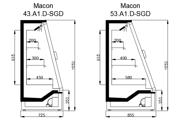 MACON D-SGD: Market-type cabinet with sliding glass doors, featuring a stylish and ergonomic design. Preserves product freshness with its advanced air circulation system that ensures cooling homogeneity. Easily adaptable to different product groups with its adjustable shelf structure.