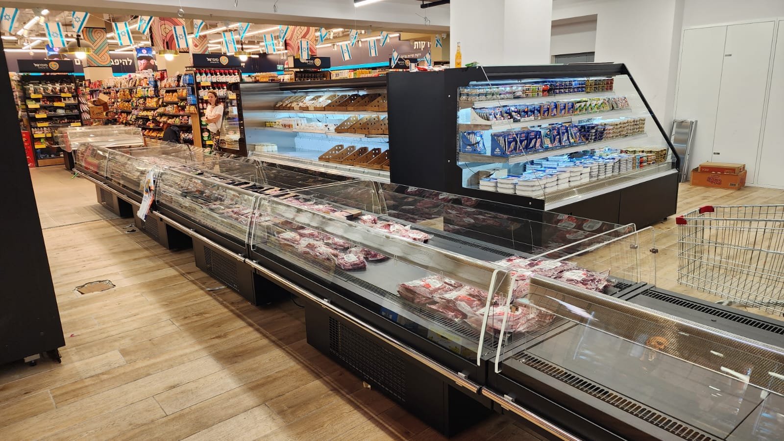 MACON NC: Semi-vertical cooler display model with night curtain. Ideal for easy-access presentation of beverages, dairy products, and packaged foods. Enhances customer shopping speed through direct access. Fits any business with its energy-efficient cooling system and modern design.